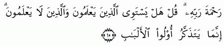 آيات قرآنية قل هل يستوي الذين يعلمون والذين لا يعلمون