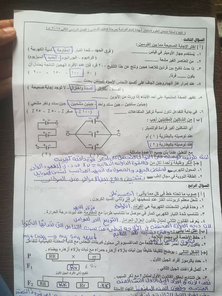 امتحانات العلوم للصف الثالث الاعدادى امتحانات المحافظات الرسمية