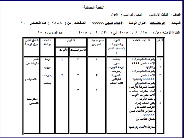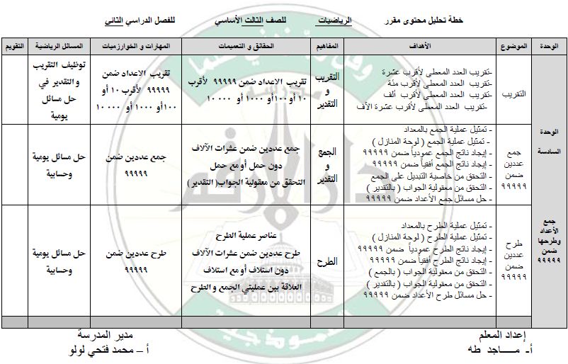 خطة تحليل محتوى رياضيات للصف الثالث الفصل الثاني المكتبة الفلسطينية الشاملة