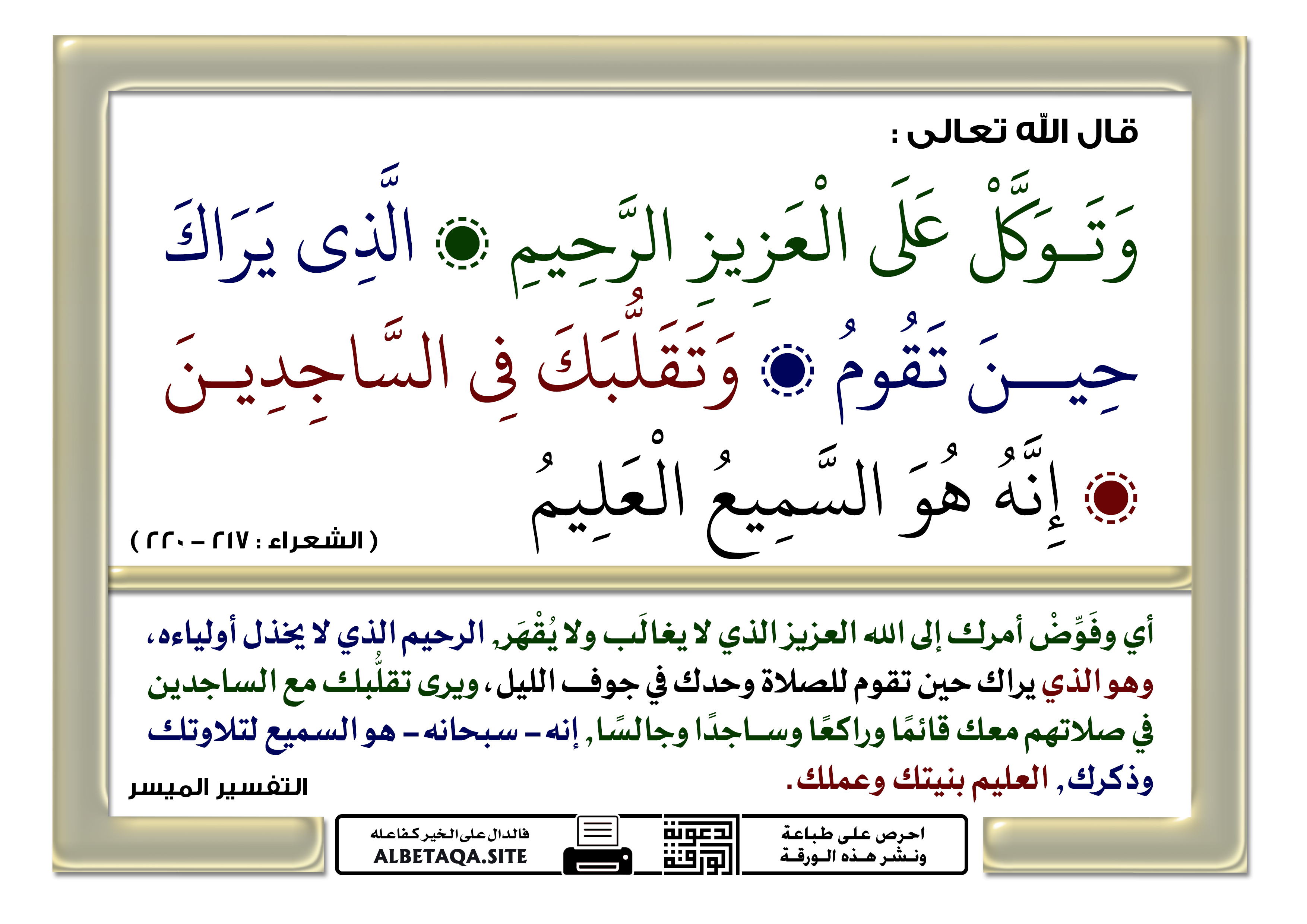 و ت و ك ل ع ل ى ال ع ز يز الر ح يم 217 ال ذ ي ي ر اك ح ين ت ق وم 218 و ت ق ل ب ك ف ي الس اج د ين 219 الشعراء اجمل واروع الصور الاسلامية والدينية 2020